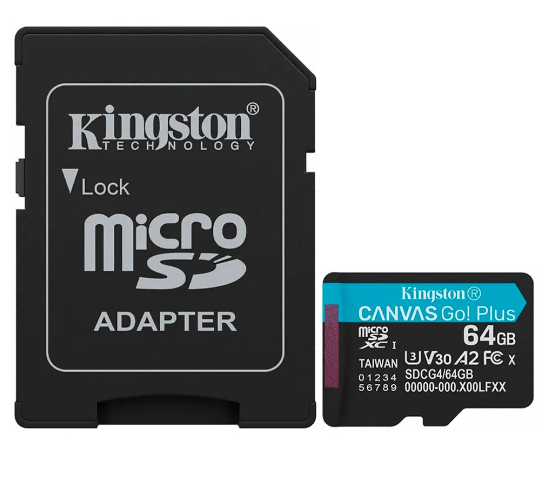 O cartão de memória **Kingston Canvas Go! Plus SDCG3/64GB** é um cartão microSDXC projetado para uso em dispositivos móveis, câmeras e drones, com especificações técnicas detalhadas a seguir.