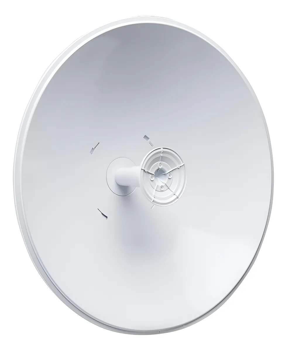 A antena AF-5G30-S45 é um componente crucial para enlaces de alto desempenho. Ela opera na faixa de frequência de 5.1 a 5.9 GHz e é construída com um refletor de prato que oferece excelente diretividade do feixe. Seu ganho é de 30 dBi, com uma relação frente-costas (F/B Ratio) de 30 dB, o que contribui significativamente para o isolamento de ruído e interferências. A antena possui polarização dupla (Vertical e Horizontal) e é selada contra intempéries, sendo projetada para instalações externas e condições ambientais severas. O feixe é altamente focalizado, com uma largura de feixe de 4.7 graus, característica essencial para enlaces de longa distância, pois maximiza a concentração de sinal no alvo e minimiza interferências.