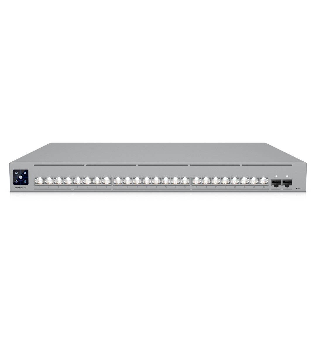 USW-PRO-XG-24 é uma solução centralizada de agregação e acesso de alta performance, combinando uma matriz versátil de portas de multi-gigabit, capacidades de roteamento de camada 3 e gerenciamento unificado via plataforma UniFi.