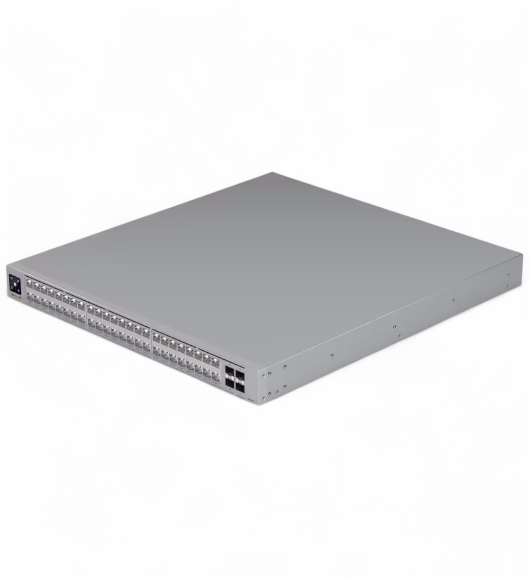 O Ubiquiti USW-Pro-XG-48-POE é um switch corporativo gerenciado de Camada 3, projetado para ambientes de rede de alto desempenho. O seu layout físico de portas consiste em 48 portas Ethernet com iluminação e 4 portas de uplink SFP28. Especificamente, ele fornece 16 portas RJ45 que operam em 2.5 Gigabit Ethernet e 32 portas RJ45 que suportam velocidades multigigabit de 10G, 5G, 2.5G, 1G, 100M e 10M. Todas as 48 portas de cobre são capazes de fornecer PoE+++ com um orçamento máximo de 1080 watts quando operando em 200-240V CA, ou 972 watts em 100-120V CA. Cada porta pode entregar até 90 watts de energia. Para uplink e agregação, o switch está equipado com quatro portas SFP28 de 25 Gigabit que suportam velocidades de 25G, 10G e 1G.